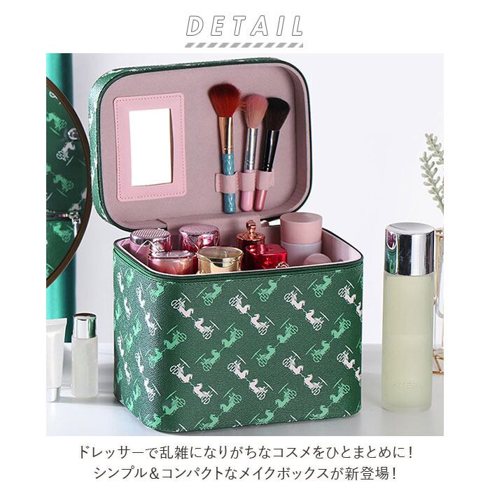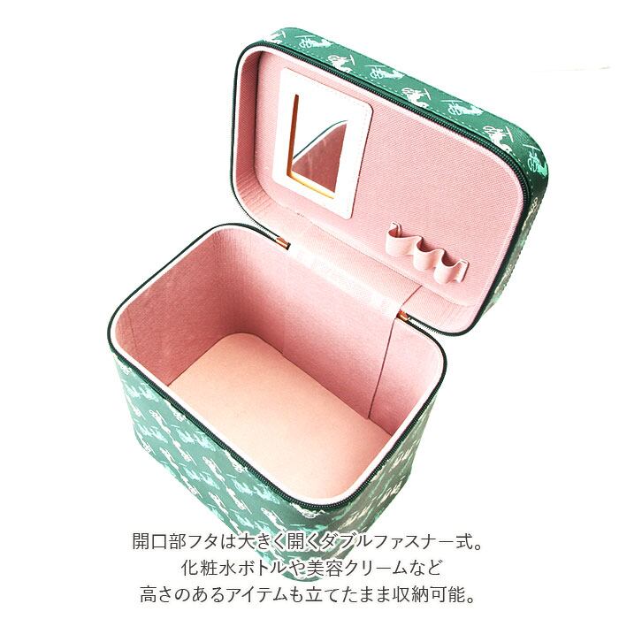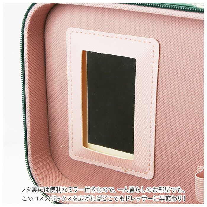 ・開口部フタは大きく開くダブルファスナー式。フタ裏には便利なミラー付きなので、一人暮らしのお部屋でも、このコスメボックスを広げればどこでもドレッサーに早変わり!