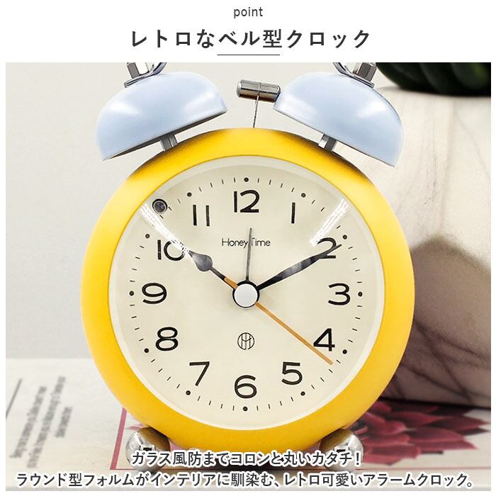 ・ガラス風防までコロンと丸いカタチ!ラウンド型フォルムがインテリアに馴染む、レトロ可愛いアラームクロック。