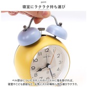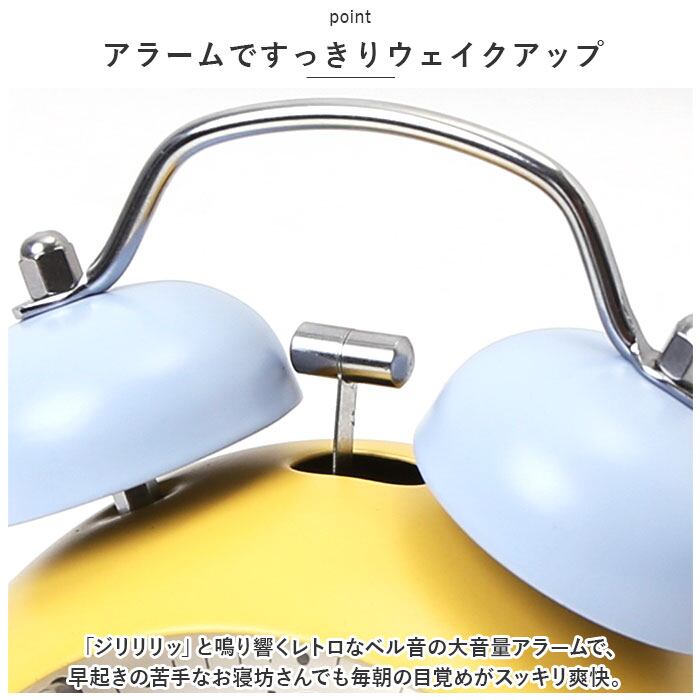 ・「ジリリリッ」と鳴り響くレトロなベル音の大音量アラームで、早起きの苦手なお寝坊さんでも毎朝の目覚めがスッキリ爽快。(※アラーム時刻設定用の目盛りは12分単位になります。アラーム設定をする際にお気をつけください。)