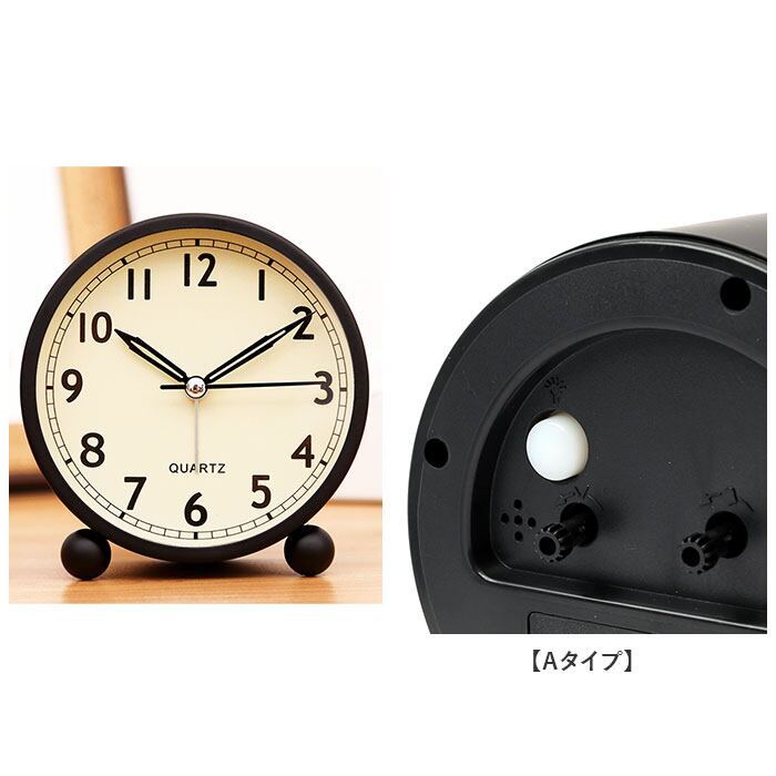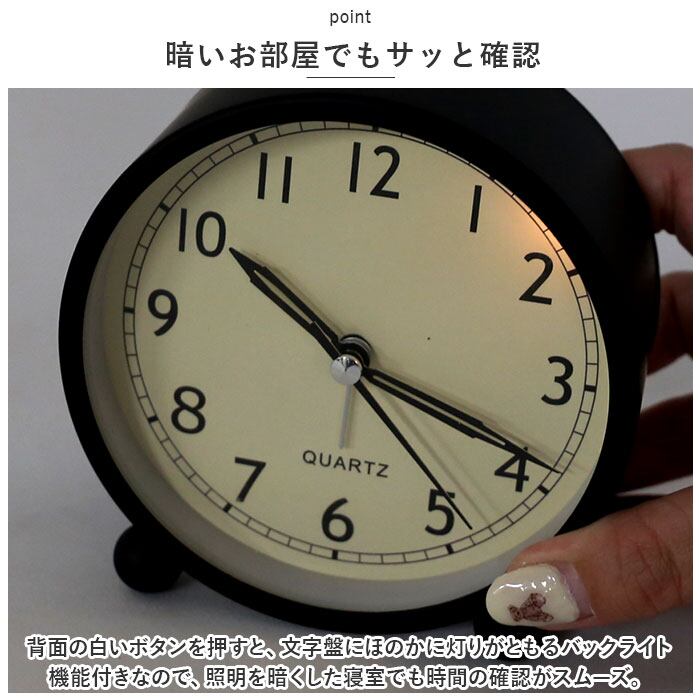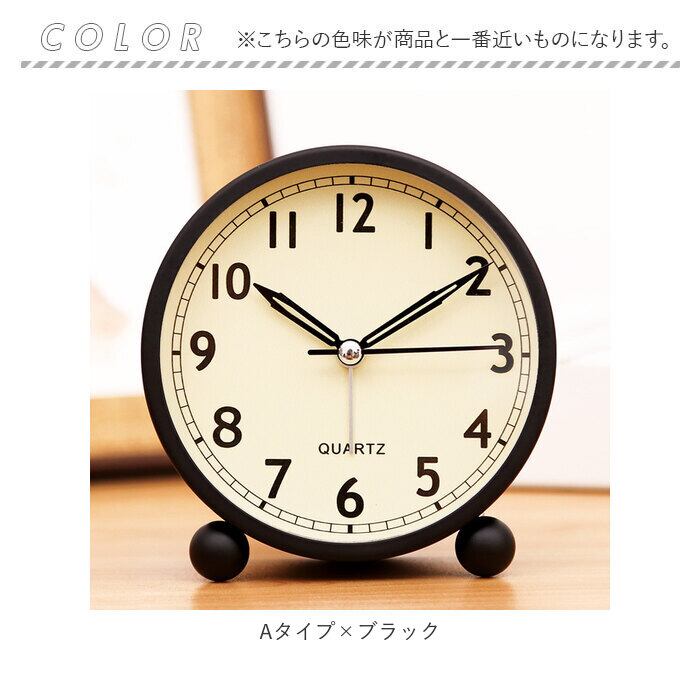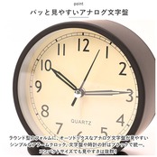 ・ラウンド型のフォルムに、オーソドックスなアナログ文字盤が見やすいシンプルなアラームクロック。文字盤や時計の針はブラックで統一。コンパクトサイズでも見やすさは抜群!