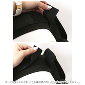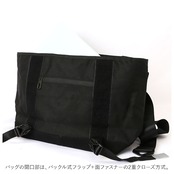 ・スーツスタイルに合わせても違和感のないシンプルなブラックカラー。フラップとバックルベルトにあしらったリフレクターテープがデザインのワンポイント。