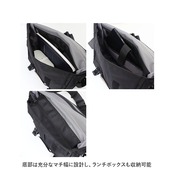 ・メイン収納ルームは使い勝手のいいA4対応サイズ。スリムな見た目ながら、底部は充分なマチ幅に設計し、ランチボックスも収納可能。