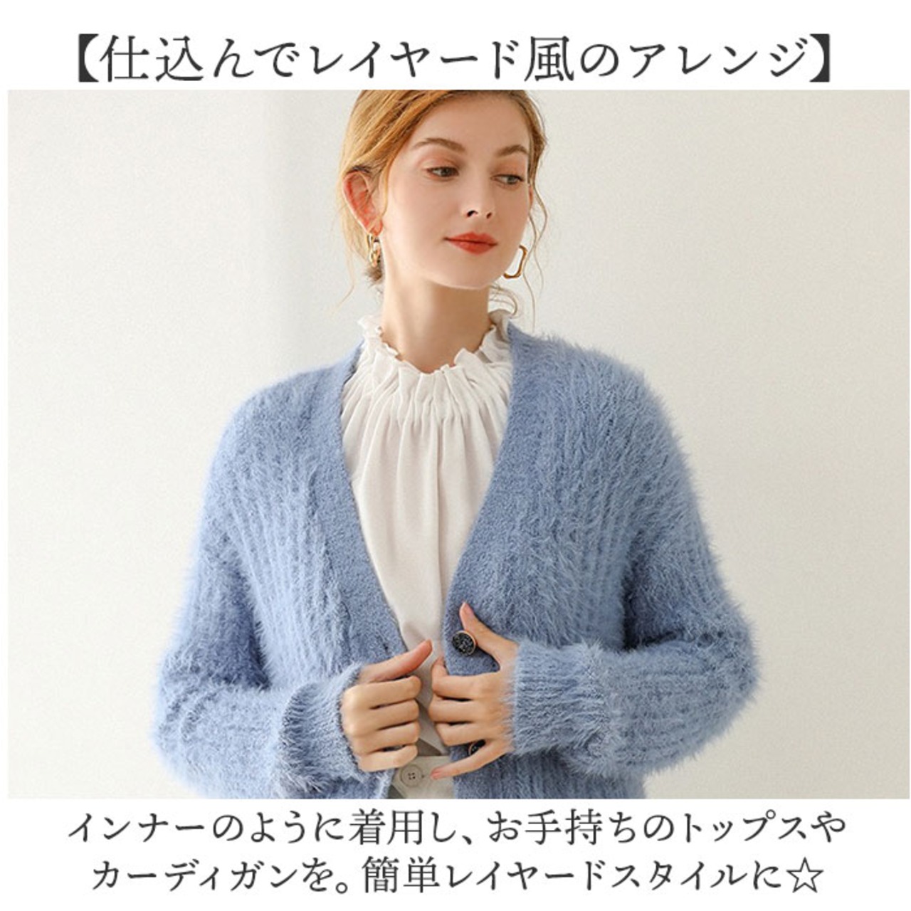 ・襟元のアクセント使いにはもちろん。トップスとしても大活躍!