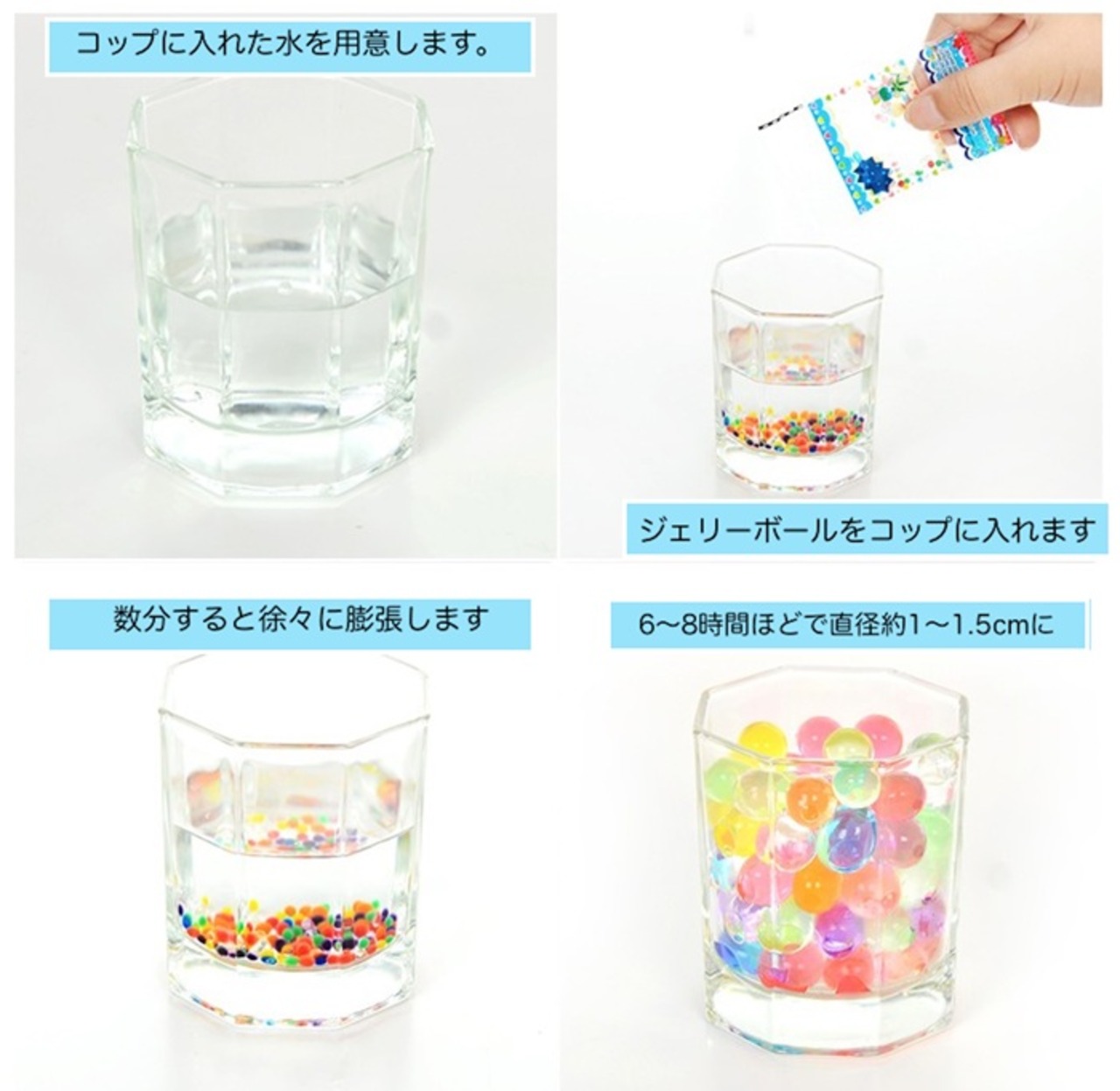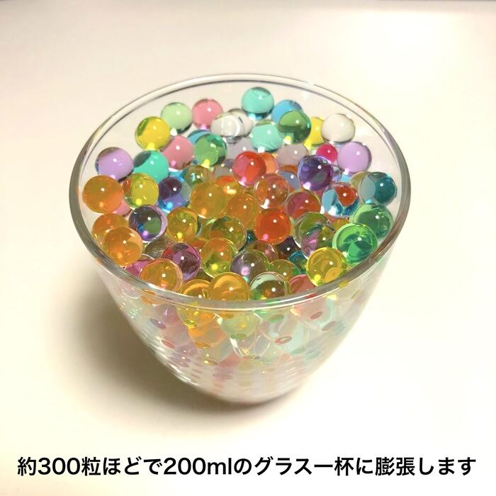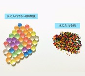 ・水に入れると膨らむ、カラフルできれいなゼリー状の不思議なボール。