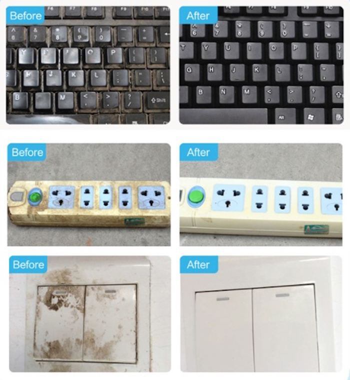 ・洗剤を使わず、ステンレス・ガラス・陶器など、キッチン周りのしつこい汚れが綺麗に落ちる。
