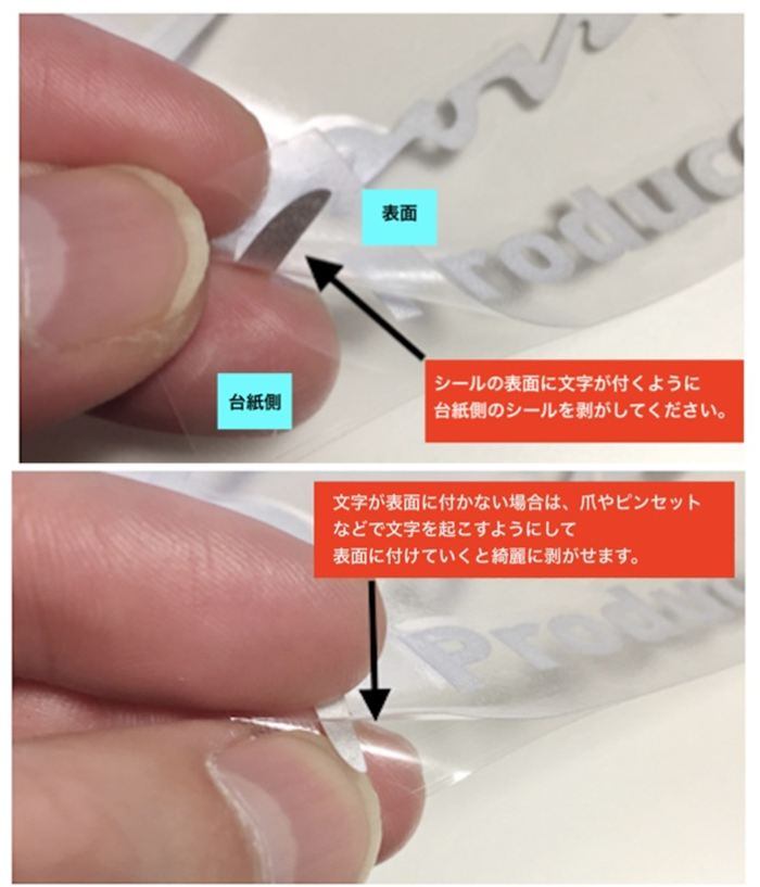 ・台紙(一番下のシール)から剥がす際に、文字が表面に付くように剥がす。