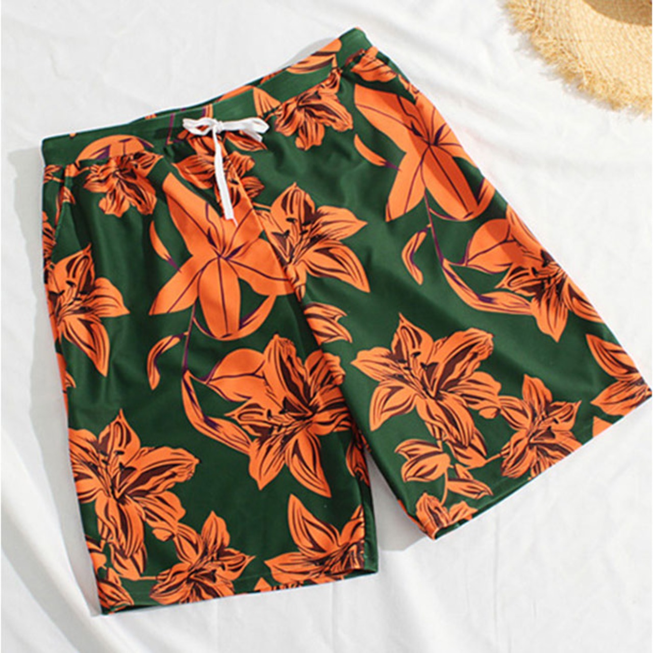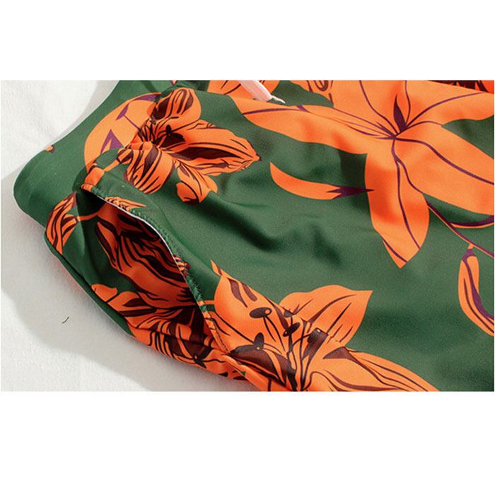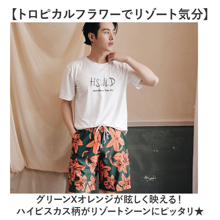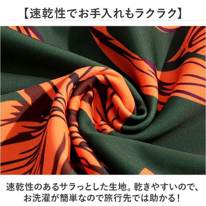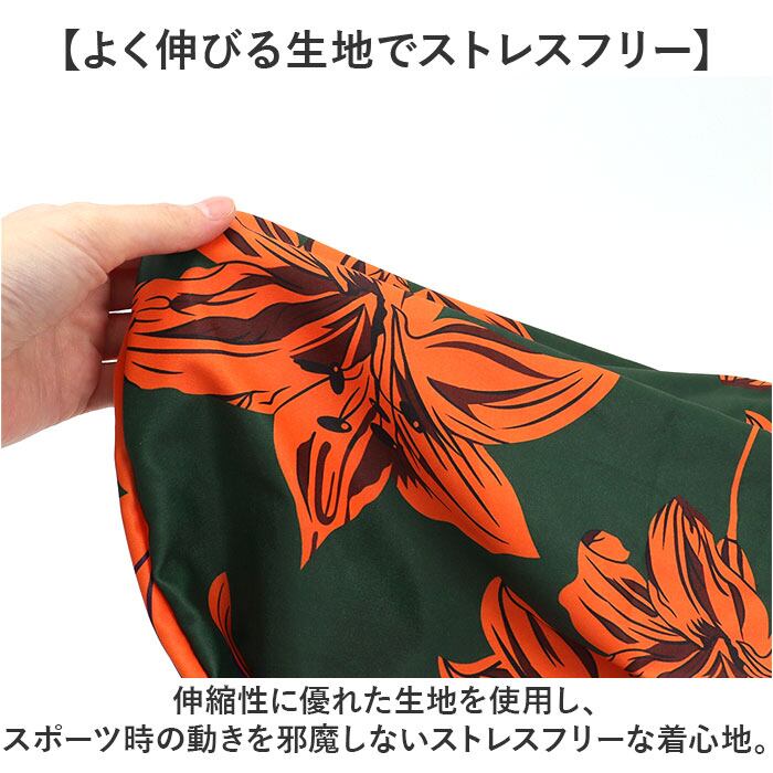 ・グリーンXオレンジが眩しく映える!ハイビスカス柄がリゾートシーンにピッタリ★
