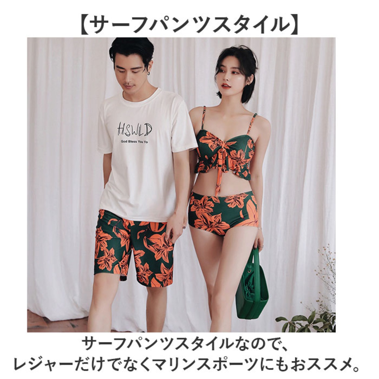 ・同柄でレディースタイプの水着もあるので、カップルや友達とお揃いコーデにしてみては♪