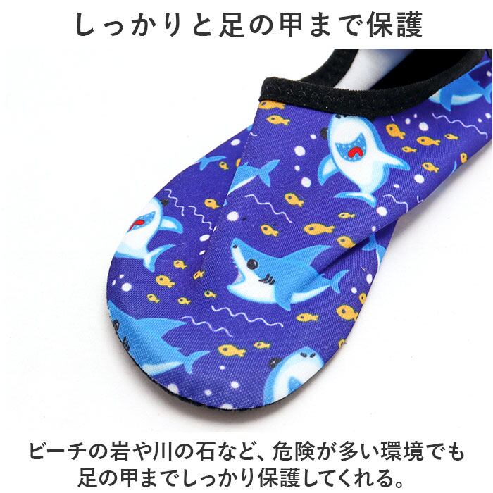 ・ビーチの岩や川の石など、危険が多い環境でも足の甲までしっかり保護してくれる。