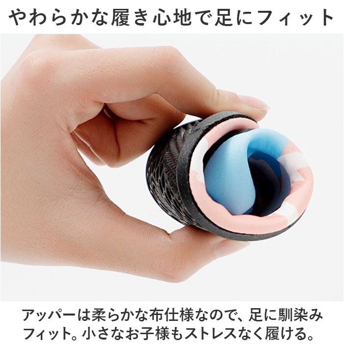 ・アッパーは柔らかな布仕様なので、足に馴染みフィット。小さなお子様もストレスなく履ける。