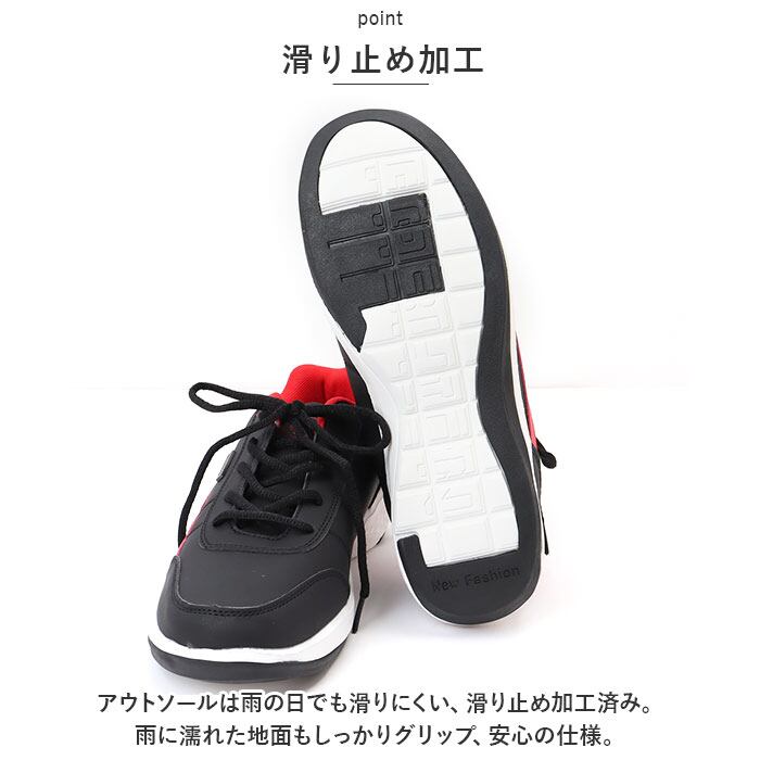 ・アウトソールは雨の日でも滑りにくい、滑り止め加工済み。雨に濡れた地面もしっかりグリップ、安心の仕様。