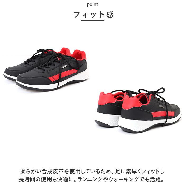 ・柔らかい合成皮革を使用しているため、足に素早くフィットし長時間の使用も快適に。ランニングやウォーキングでも活躍。
