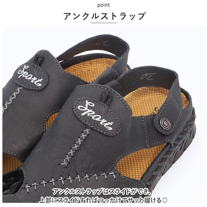 ・アンクルストラップはスライドができ、上部にスライドすればつっかけてサッと履ける◎