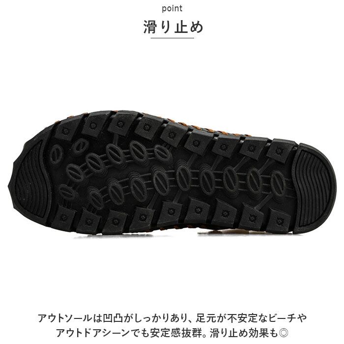 ・アウトソールは凹凸がしっかりあり、足元が不安定なビーチやアウトドアシーンでも安定感抜群。