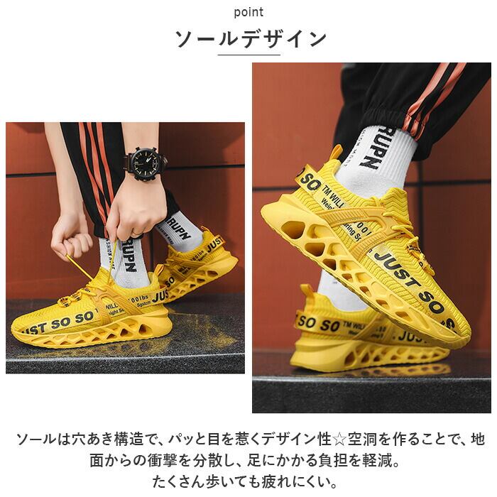 ・アッパー部分がメッシュ仕様になっている、通気性抜群のスニーカー!汗をかくスポーツシーンでもムレにくく快適◎伸縮性にも優れ、足にフィット!