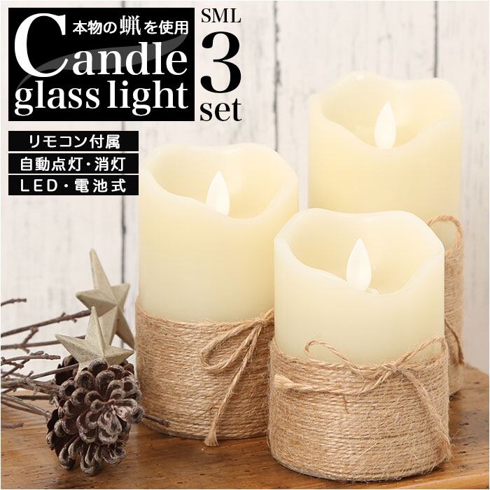 キャンドルライト led 通販 3本セット LEDキャンドル LEDキャンドルライト LED ガラス リモコン タイマー 電池 イルミネーション ウェルカムスペース ゆらゆら 揺れる 癒し インテリア おしゃれ