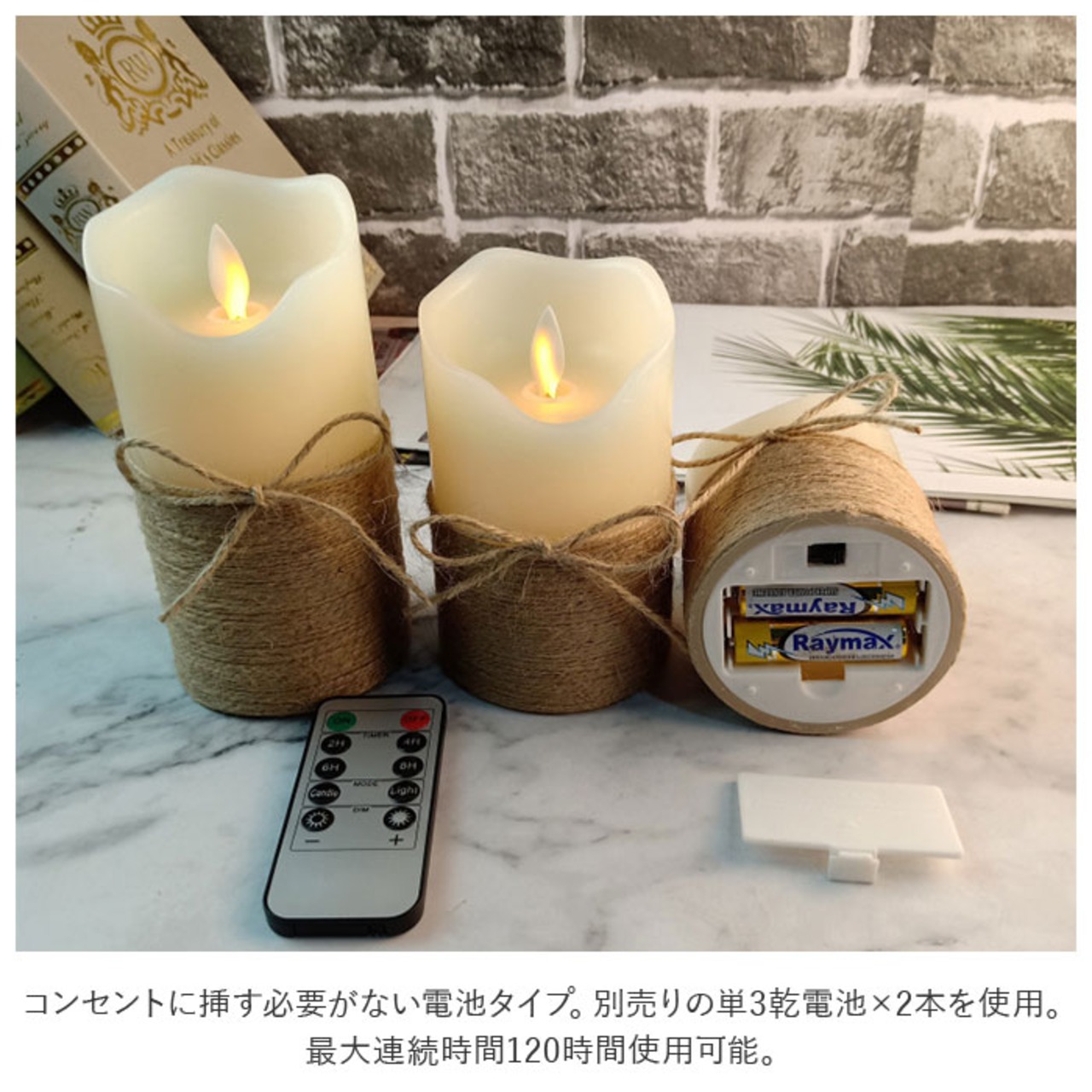 ・コンセントに挿す必要がない電池タイプ。別売りの単3乾電池×2本を使用。最大連続時間120時間使用可能。