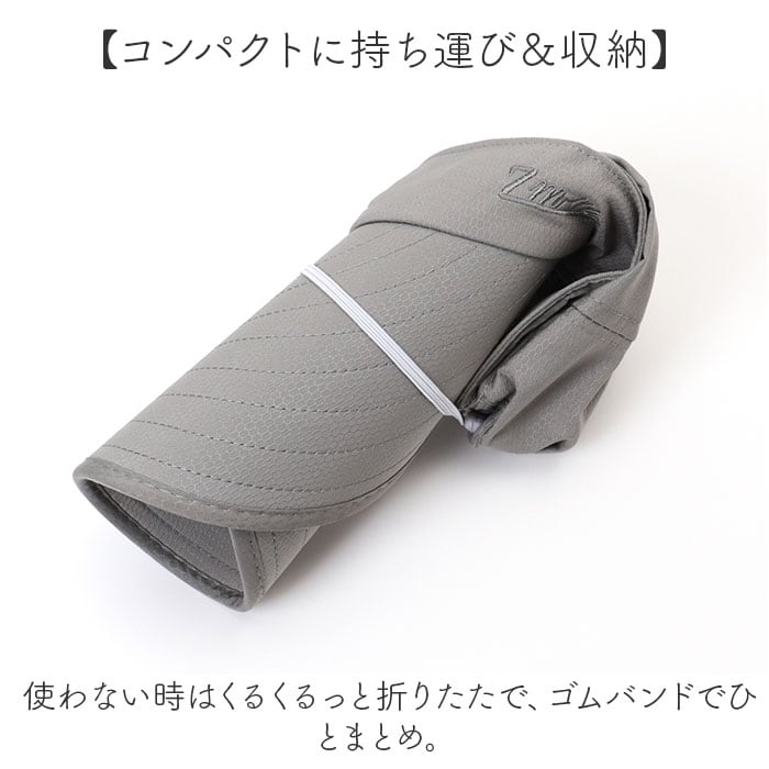 ・ネックカバーとフェイスカバーは、スナップボタン着脱。両方装着で、どの角度からも日差しをガード。