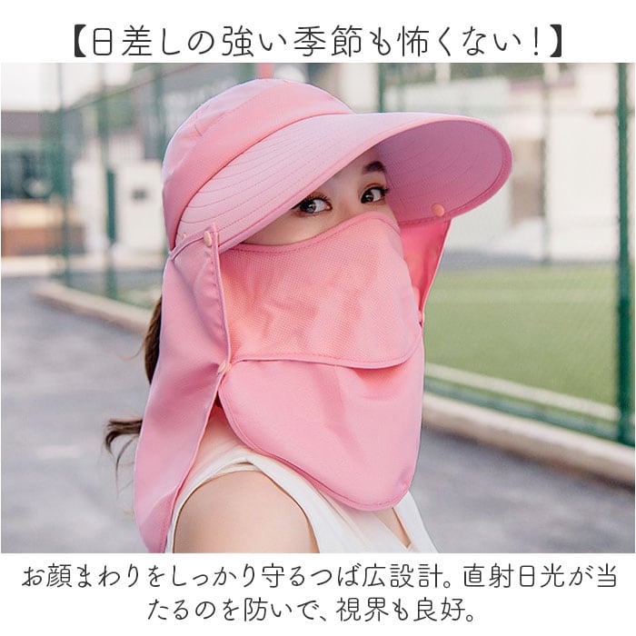 日よけ帽子 レディース 通販 サンバイザー フェイスカバー 帽子 たためる ガーデンハット つば広帽子 紫外線対策 日焼け対策 マスク 首 おしゃれ オシャレ 庭仕事 ネックカバー 女性 花粉対策 飛沫対策 アウトドア サイクリング 海 フ゜ール