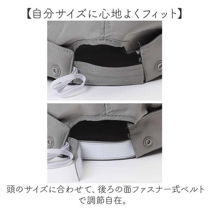 ・頭のサイズに合わせて、後ろの面ファスナー式ベルトで調節自在。