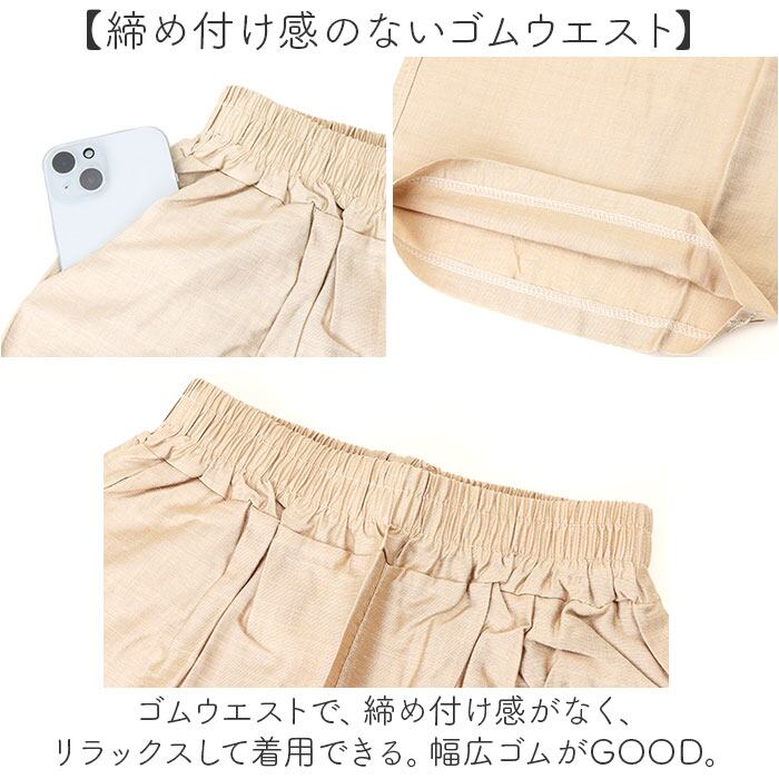 ・ゴムウエストで、締め付け感がなく、リラックスして着用できる。幅広ゴムがGOOD。