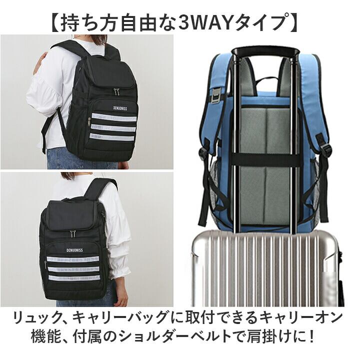 ・リュック、キャリーバッグに取付できるキャリーオン機能、付属のショルダーベルトで肩掛けに!