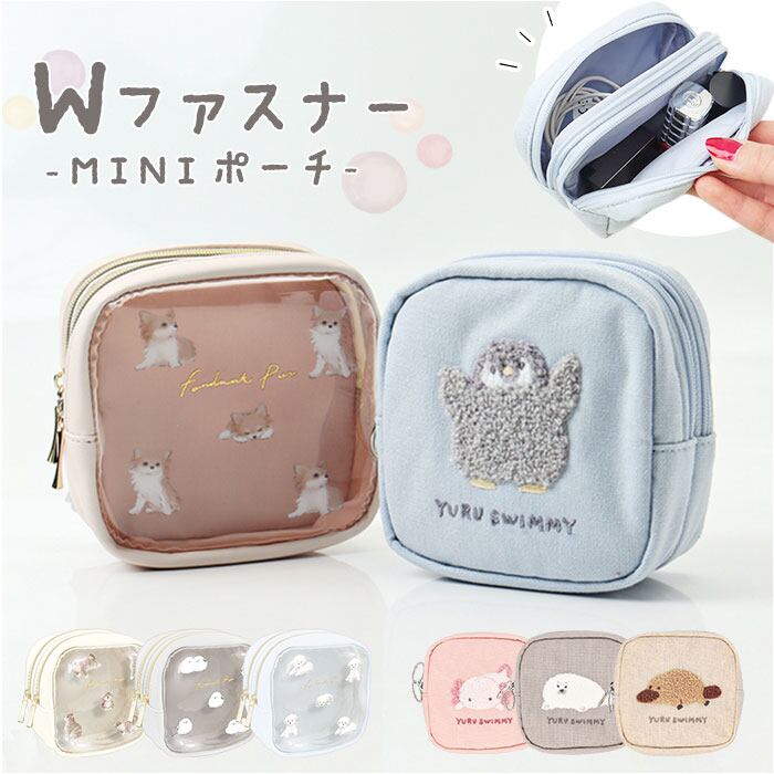 ・細々したアイテムをIN♪仕分けしやすく、持ち歩きに便利な「Wファスナーミニポーチ」。