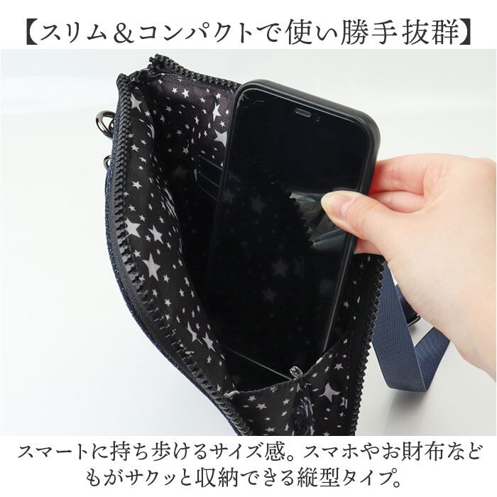 ・スマートに持ち歩けるサイズ感。スマホやお財布などもがサクッと収納できる縦型タイプ。