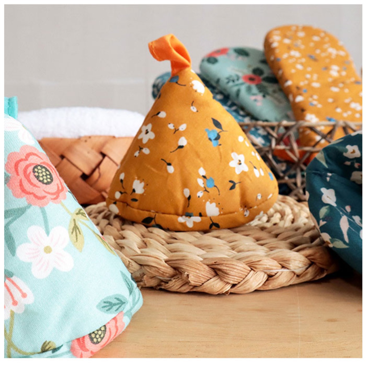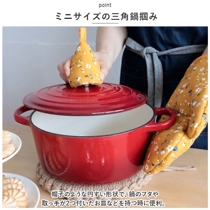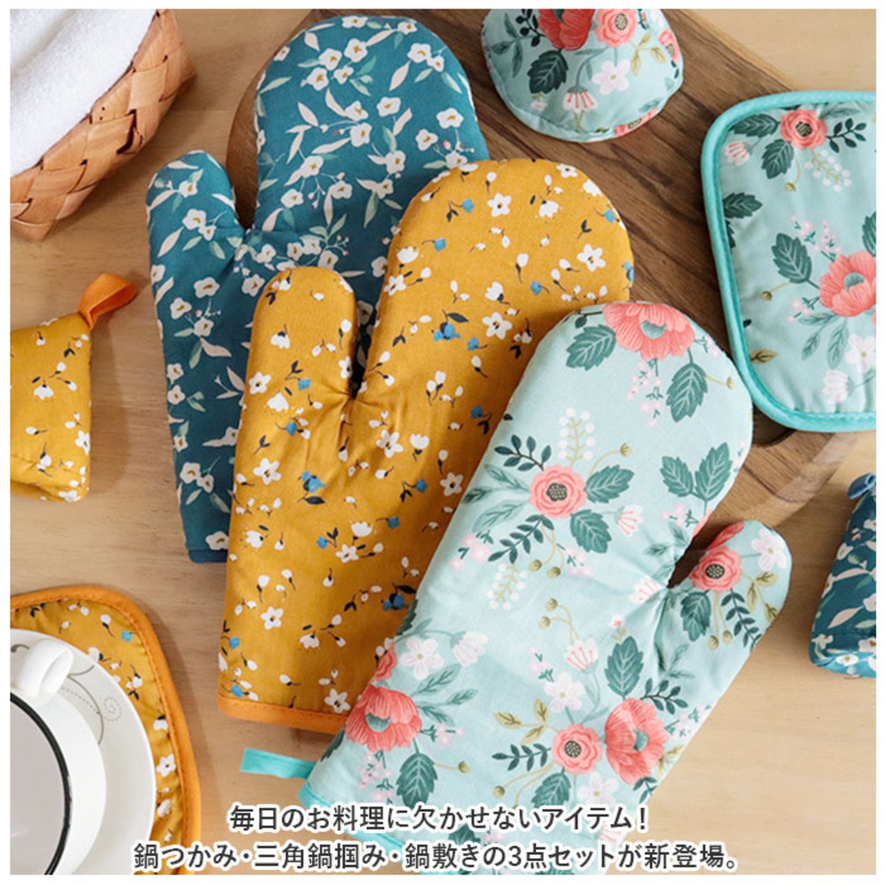 ・毎日のお料理に欠かせないアイテム!鍋つかみ・三角鍋掴み・鍋敷きの3点セットが新登場。