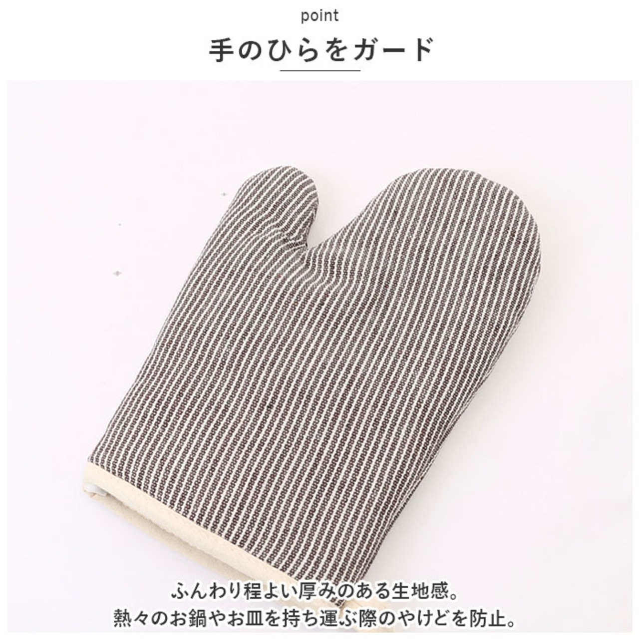 ・ふんわり程よい厚みのある生地感。熱々のお鍋やお皿を持ち運ぶ際のやけどを防止。