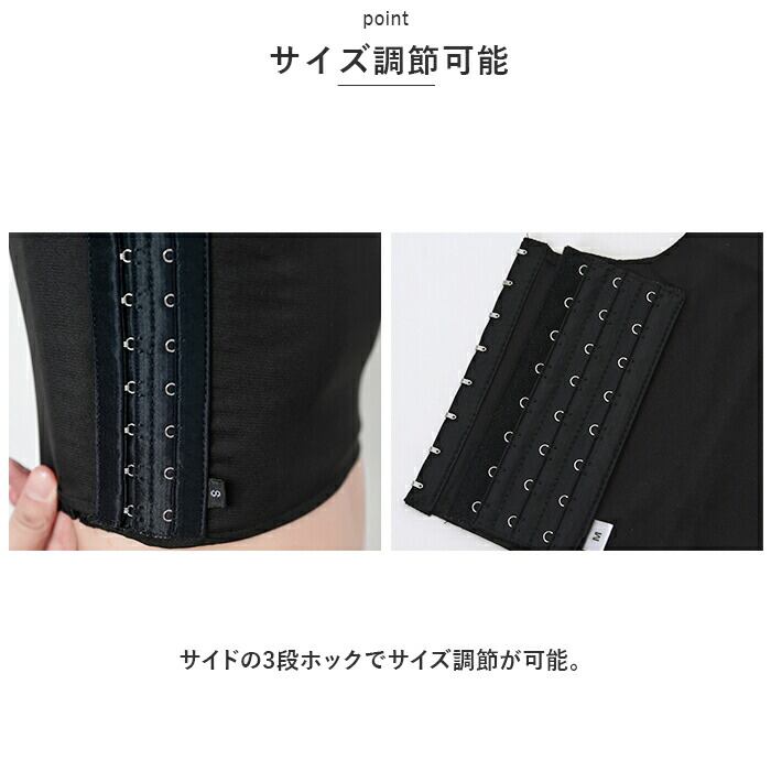 ・サイドの3段ホックでサイズ調節が可能。