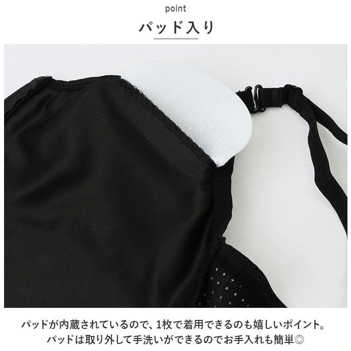 ・パッドが内蔵されているので、1枚で着用できるのも嬉しいポイント。パッドは取り外して手洗いができるのでお手入れも簡単◎