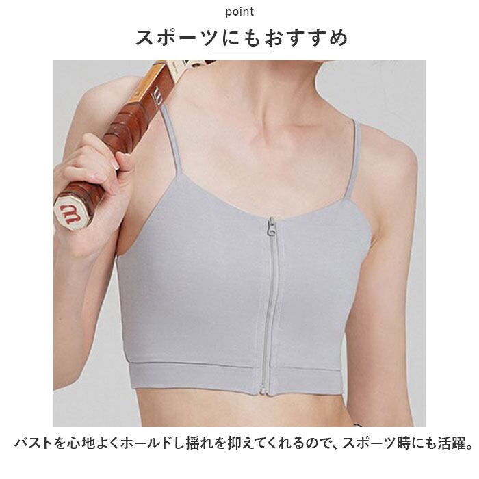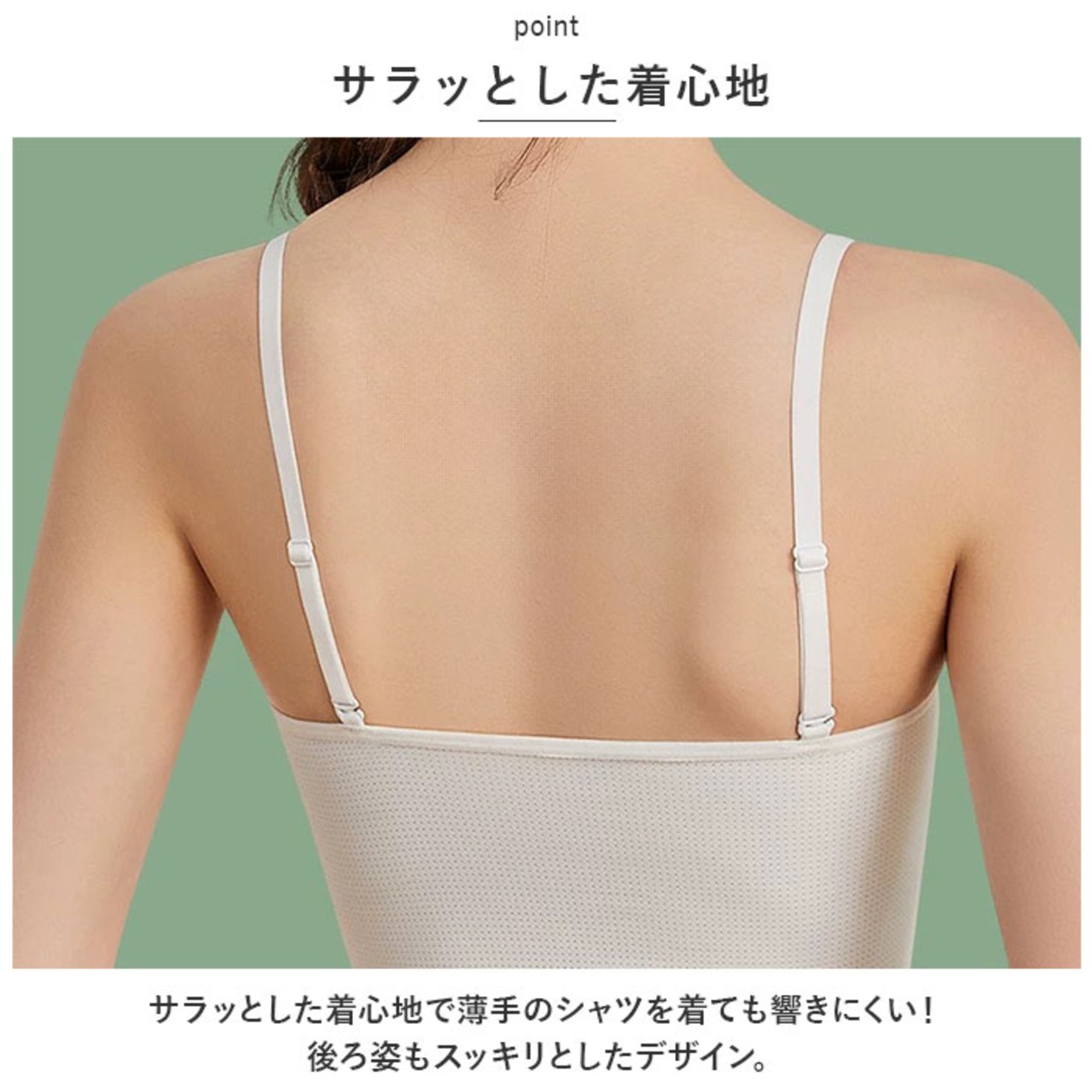 ・ハーフトップのキャミソールタイプ。ストラップは付け外し可能で、自分サイズに長さ調節もOK!