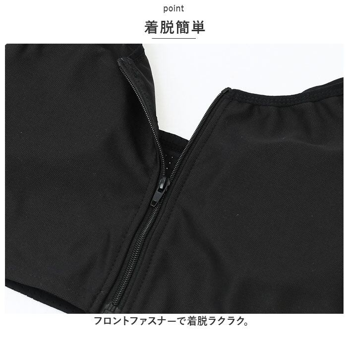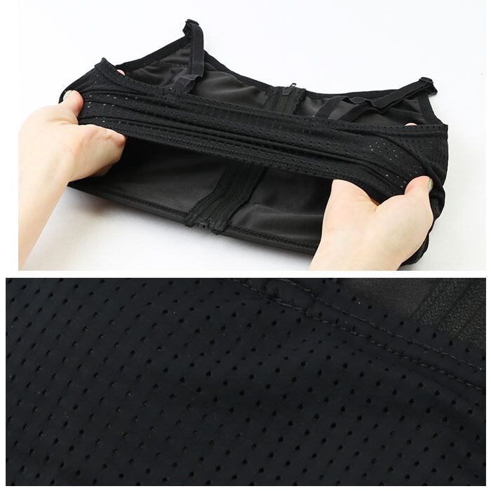 ・背面はメッシュ素材で通気性が良く、伸縮性もあるので締めつけ感なく着用できる。