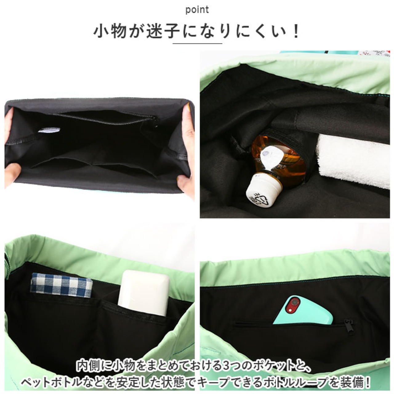 ・内側に小物をまとめておける3つのポケットと、ペットボトルなどを安定した状態でキープできるボトルループを装備!