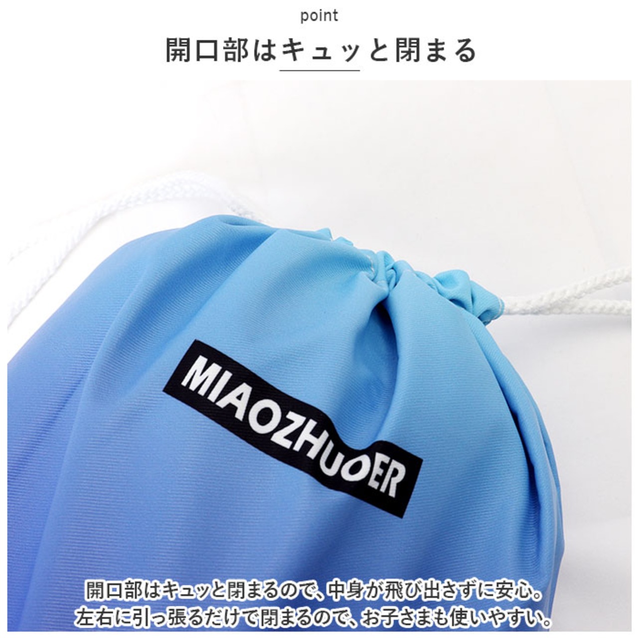 ・開口部はキュッと閉まるので、中身が飛び出さずに安心。左右に引っ張るだけで閉まるので、お子さまも使いやすい。