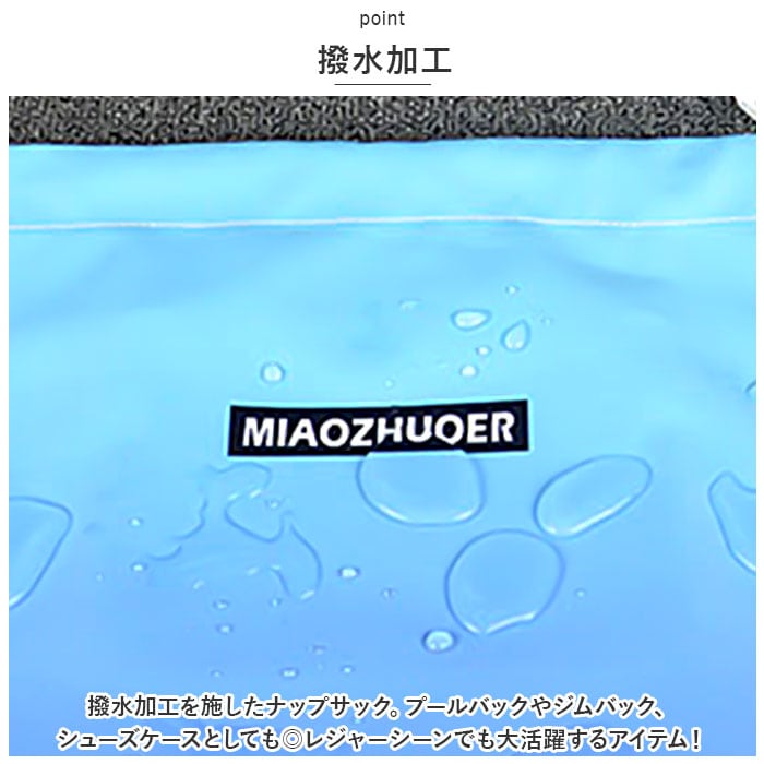 ・撥水加工を施したナップサック。プールバックやジムバック、シューズケースとしても◎レジャーシーンでも大活躍するアイテム!