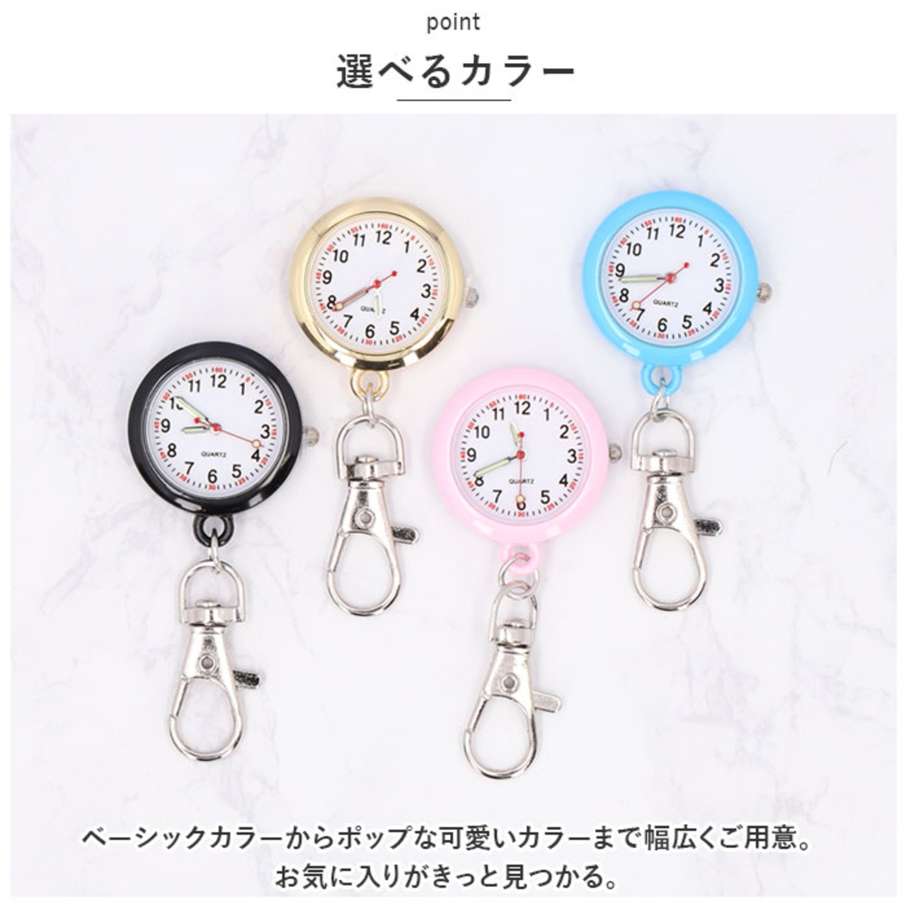 ・ナスカンでどこにでも簡単装着◎お子さまから大人まで誰でも使える◎カラフルでキュートな「ナースウォッチ」が登場。