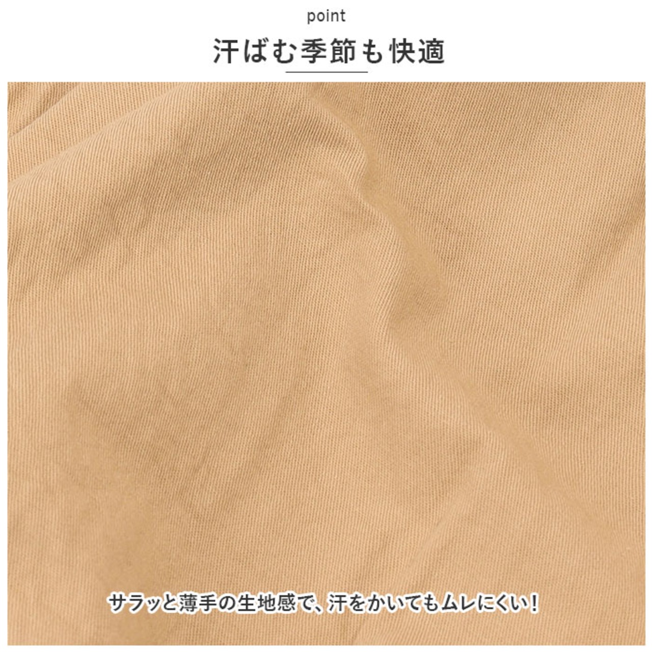 ・サラッと薄手の生地感で、汗をかいてもムレにくい!