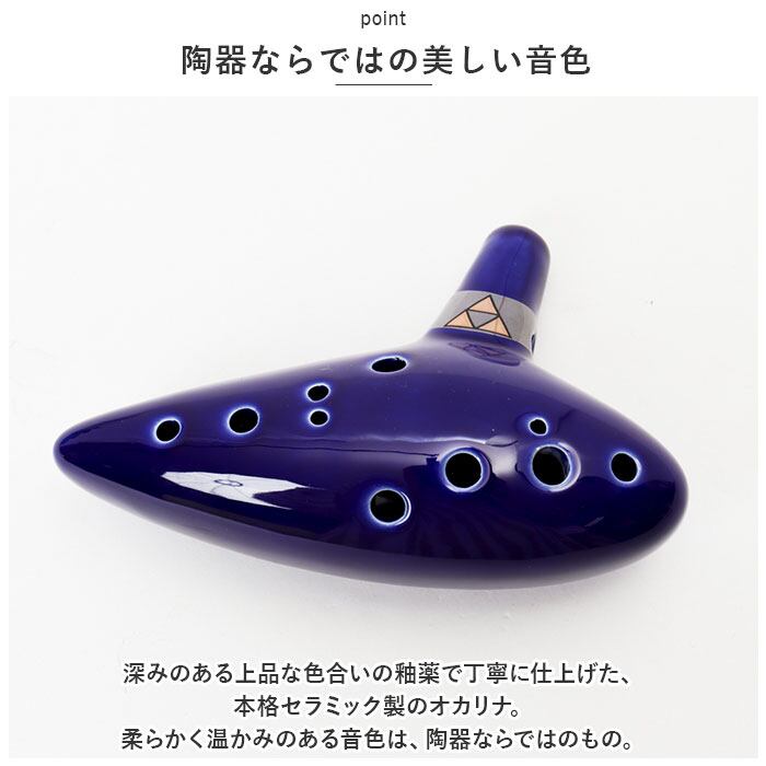 ・深みのある上品な色合いの釉薬で丁寧に仕上げた、本格セラミック製のオカリナ。柔らかく温かみのある音色は、陶器ならではのもの。
