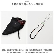 ・和風ビーズと飾り紐で組み上げたオリエンタルな雰囲気のストラップ紐が付属。クッション性のあるソフトケース付きなので、持ち運びも安心。