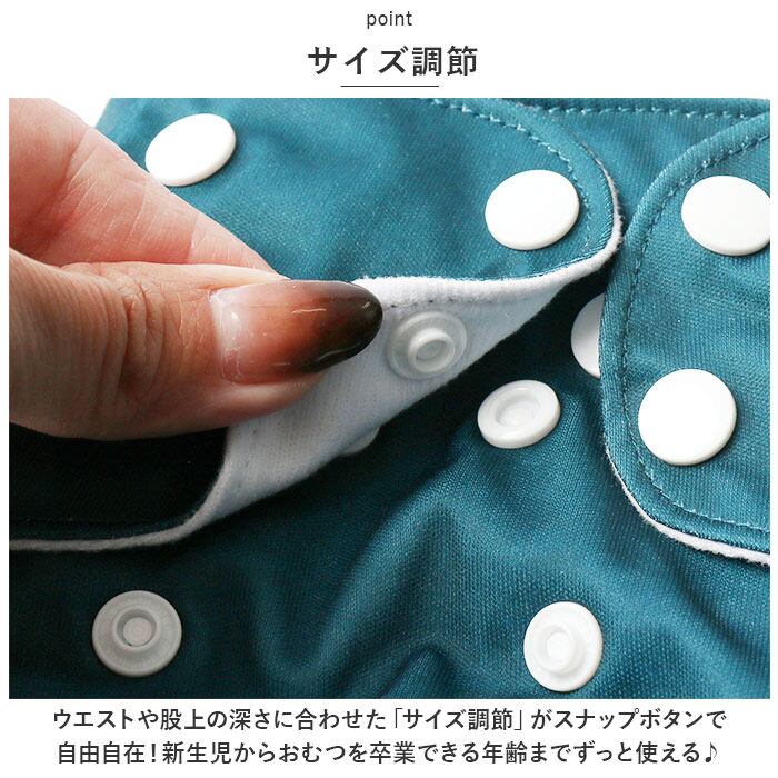 ・ウエストや股上の深さに合わせた「サイズ調節」がスナップボタンで自由自在!