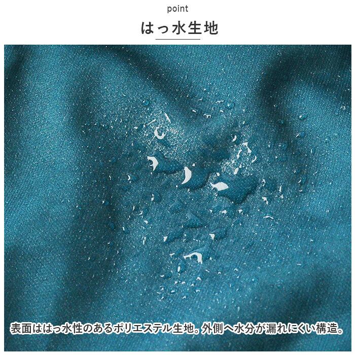 ・表面ははっ水性のあるポリエステル生地。外側へ水分が漏れにくい構造。