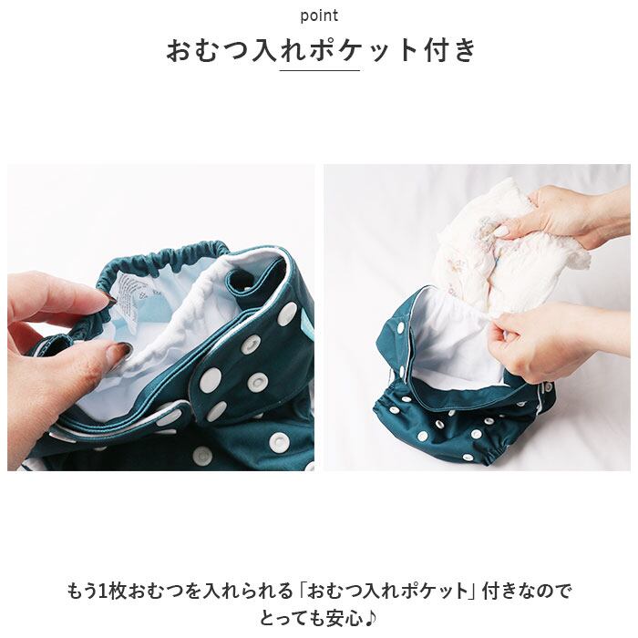 ・もう1枚おむつを入れられる「おむつ入れポケット」付きなのでとっても安心♪