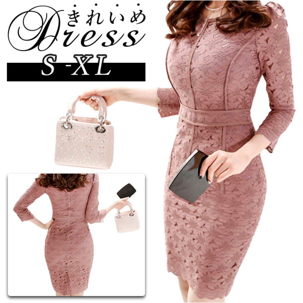 ワンピース レディース タイト 通販 タイトワンピース ミニ パーティドレス ミニワンピース ミニワンピ レース 7分袖 七分袖 シンプル セクシー 結婚式 二次会 パーティ ミニスカート ショート ショート丈 ミニ丈 レディースファッション