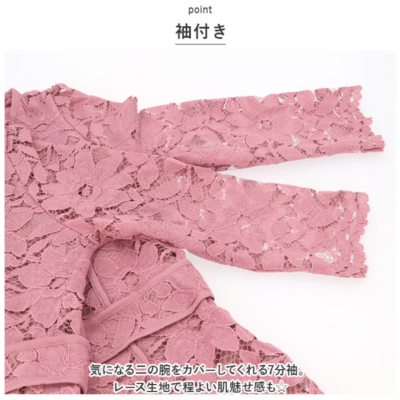 ・気になる二の腕をカバーしてくれる7分袖。レース生地で程よい肌魅せ感も☆
