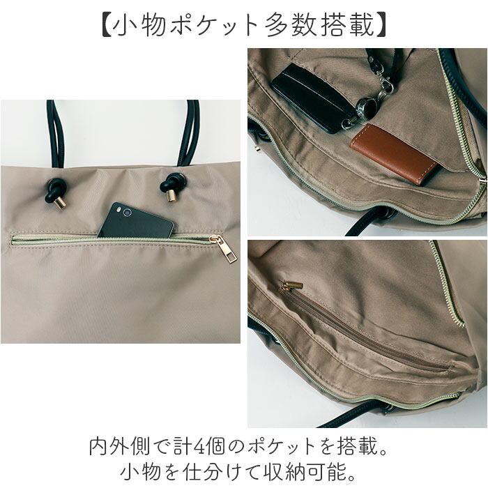 ・内外側で計4個のポケットを搭載。小物を仕分けて収納可能。
