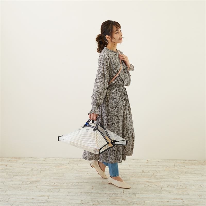 ・真ん中で折りたためば、大きなものだけでなくドリンクや調味料なども運べるトート型に。