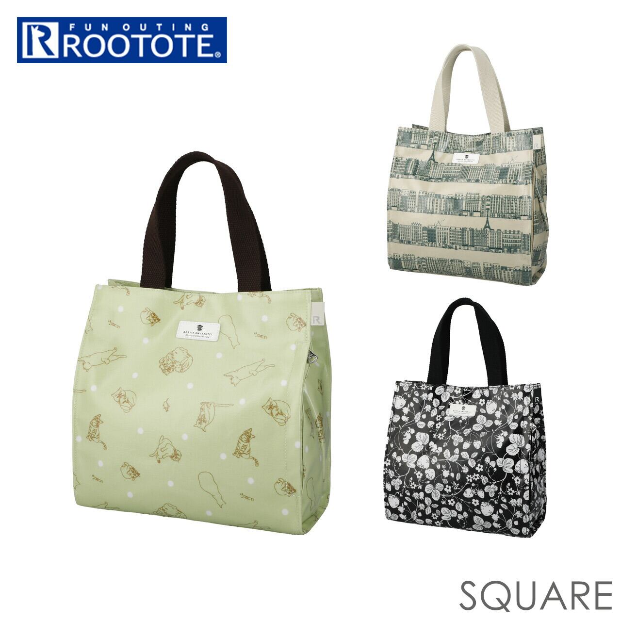 ルートート トートバッグ 通販 ROOTOTE レディース 小さめ ミニトート 正方形 サブバッグ デイリーバッグ ランチトート ワンマイルトート おしゃれ シンプル 大人 かわいい 軽量 軽い 目隠し ベロ付き 撥水 雨の日 ラミネート加工 SQUARE 2971 EU.スクエア.ラミネートC