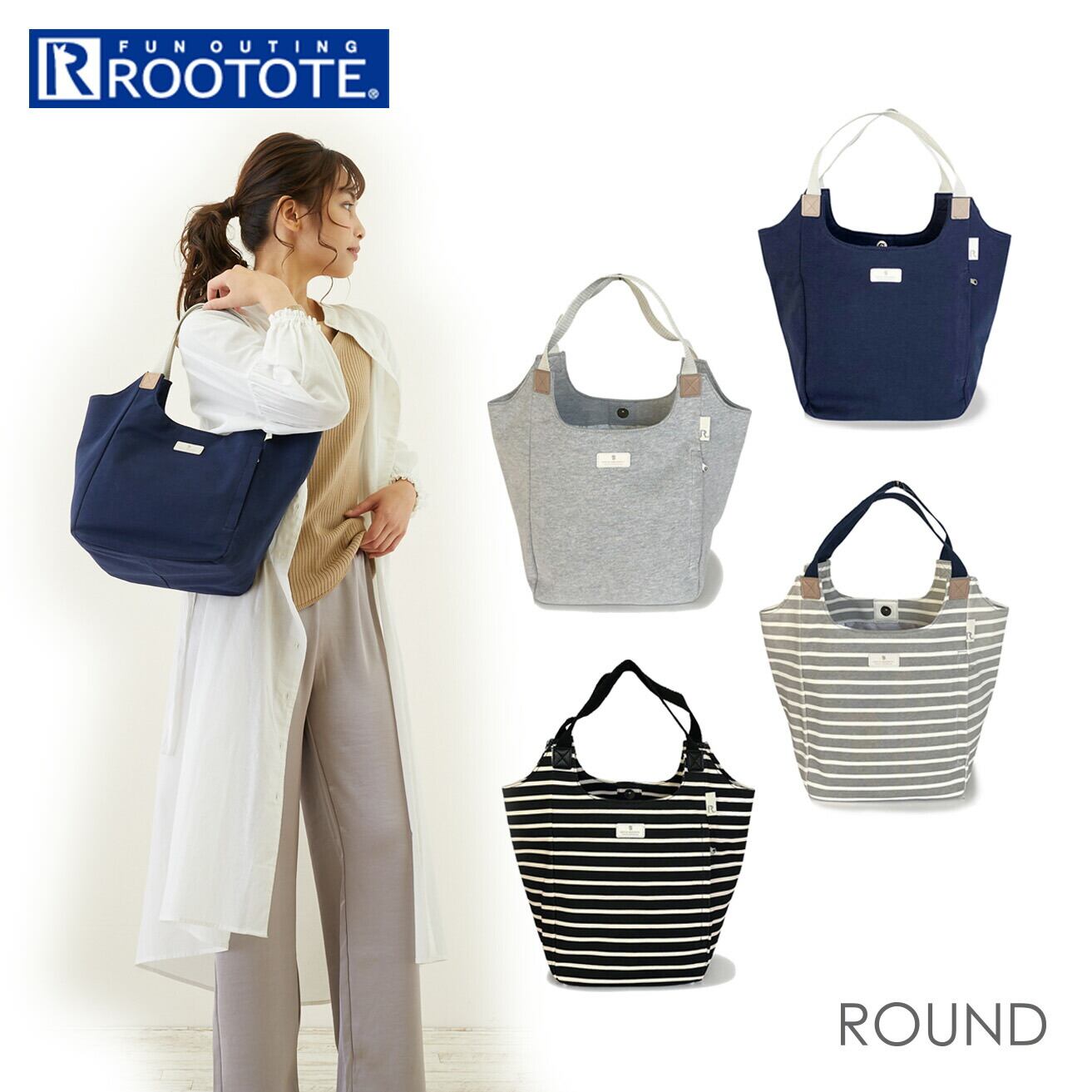 ルートート トートバッグ 通販 レディース おしゃれ マチ広 肩掛け 大きめ 大容量 軽量 カジュアル 無地 ボーダー 天竺 メランジ調 ROUND ラウンド ROOTOTE NA.ラウンド.テンジク-A